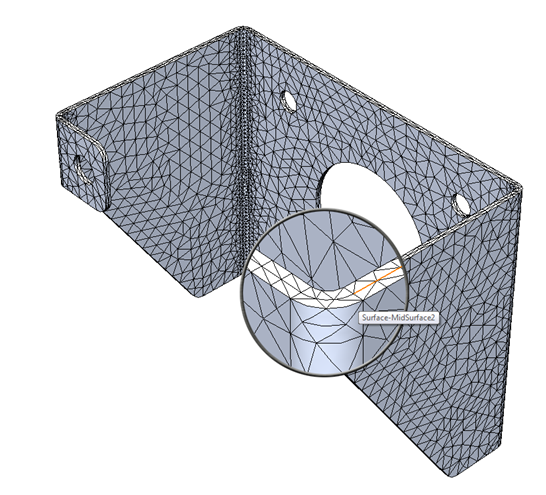 This is a really neat way of getting a great mesh on thin parts. We all know that if we have thin parts we can use shell elements. However, sometimes you might want a solid mesh but one row of elements through a wall thickness isn't really adequate; 2 rows will give better stress results. But, here's the catch, if you simply make the element size very small to get the 2 rows you end up with zillions of elements and long solution times. How then do you square this circle?