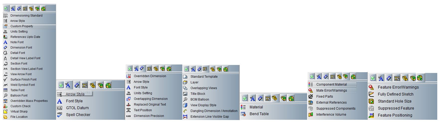 For more information on this please consult the following URL: http://help.SOLIDWORKS.com/2012/english/solidworks/solidworks_design_checker/solidworks_design_checker.htm