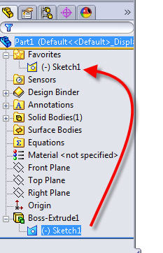 Once you have used the sketch once, you will find it disappears from view, but if you simply show it, or better still right click and "Add to Favourites" (new for 2013) the sketch appears in a prominent position in the Feature Tree.