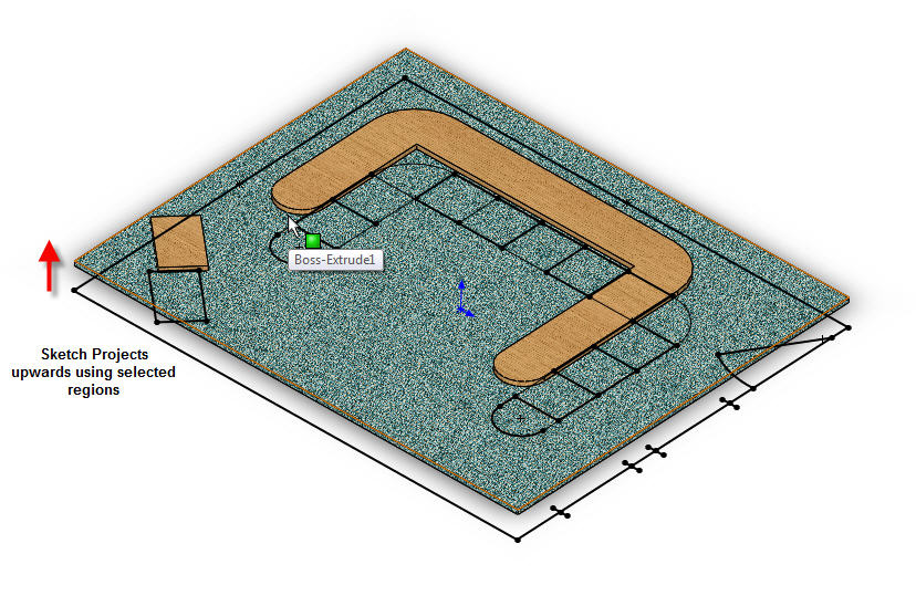 The Contour Select feature is a great addition to a number of commands to allow you to choose distinct regions of a multiple contour sketch (i.e. one with many overlapping shapes). A great application for using this is floor layouts, where in one single master sketch you may want to draw in walls, floors, window openings and desks for example.