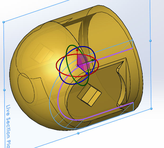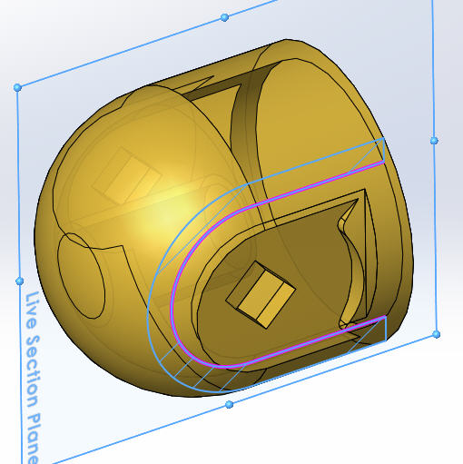 The Live Section plane tool is accessed within a part document under Insert> Feature> Reference Geometry> Live Section Planes, this tools lets you dynamically section models using any plane or planar face. This is not only an analysis tool but a useful tool for direct editing when combined with the Instant3D feature, within SOLIDWORKS. You are able to display multiple Live Section Planes consistently and they are automatically saved within the model.