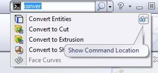 One of the common difficulties people can have when learning new software is where to find, or remember where on the toolbar they can find the "Icon", so from the 2012 SOLIDWORKS release a nice "search commands" tool was introduced: