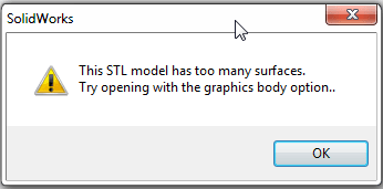 When importing large STL files in to SOLIDWORKS you may come across this error.
