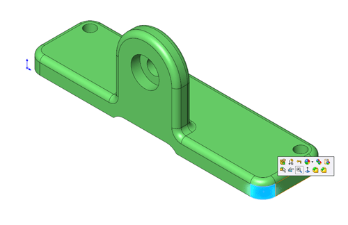 When selecting something in SOLIDWORKS you often see the context toolbar appear, and on the bottom row of icons you’ll find the magnifying glass with an equal (=) symbol, this is the zoom to selection tool, below you can see I’ve selected a Face inside the graphical window then…