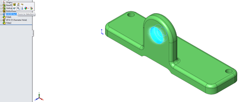 However where we see the biggest benefit of this tip is when using the feature tree to find things, so selecting a feature in the tree also brings up the context toolbar allowing us to show and zoom to the feature in the graphical window…
