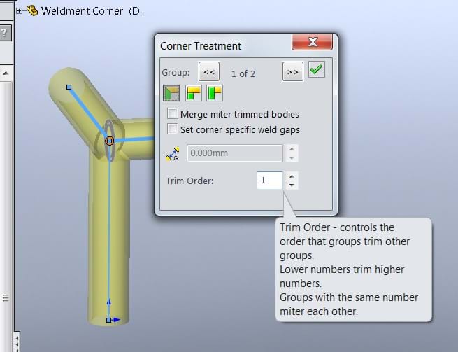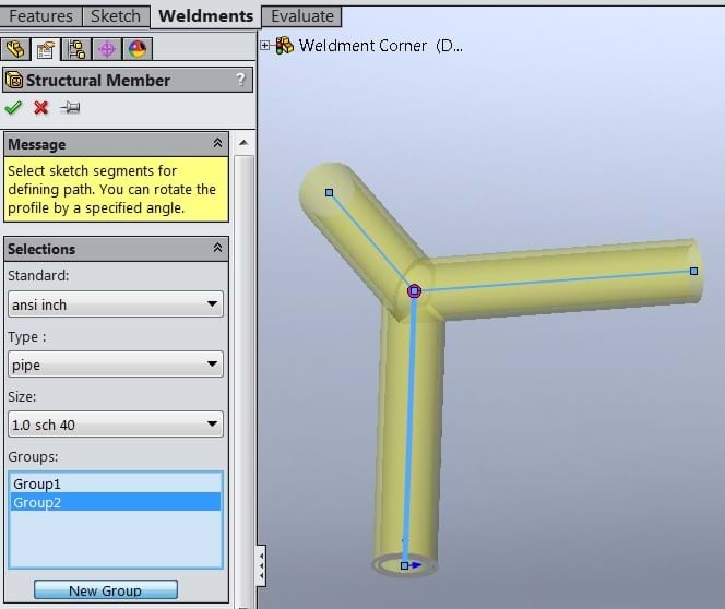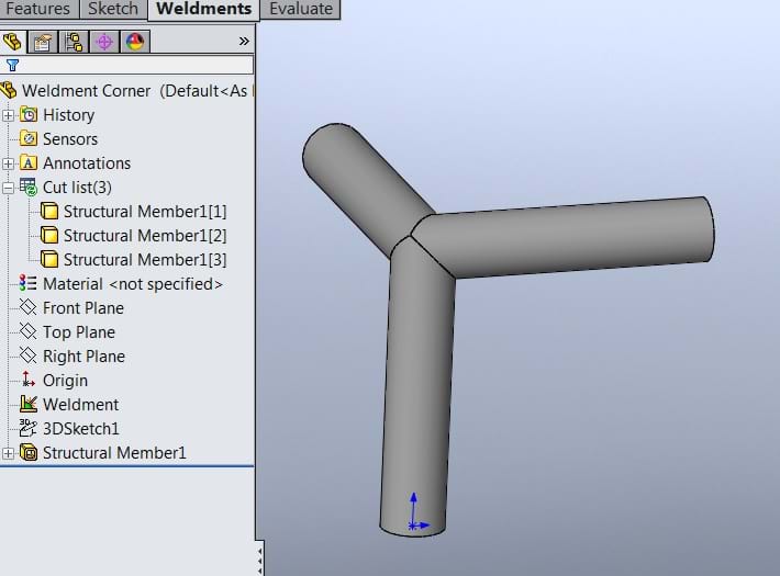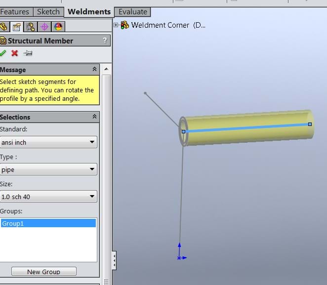 Anyone that has used the Weldment command "Structural Member" will know that you can set it to give you mitred corners - here we will look at a situation where we have three lines meeting up at the one corner of a 3D sketch. If anyone hasn't seen it - this is the button that kicks it all off...