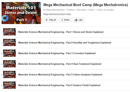 There are 6 short videos that explain very clearly (and with useful application examples) how stress and strain are calculated and how we use them in engineering calculations plus useful information on corrosion, heat treatment and surface finish. These are not replacements for formal education but are great introductions or refreshers.
