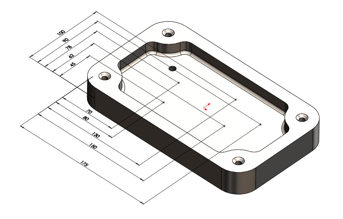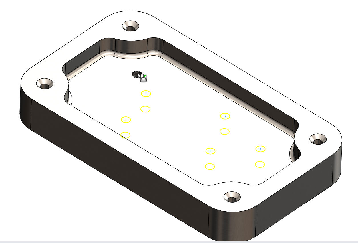 An often forgotten feature within SOLIDWORKS, sketch driven pattern is extremely useful if a repeated feature is patterned on a planar face without a singular directional vector, or ‘irregular’ spacing. Take this simple example; the aim is to create an array of tapped holes at irregular intervals where the linear pattern would not be applicable- unless it was done with many features.