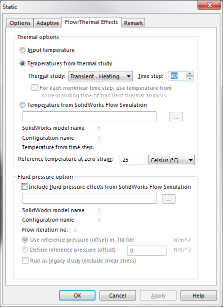 This selects the 40th time step of the Thermal study called 'Transient - Heating' and uses the temperatures to calculate the thermal stresses.