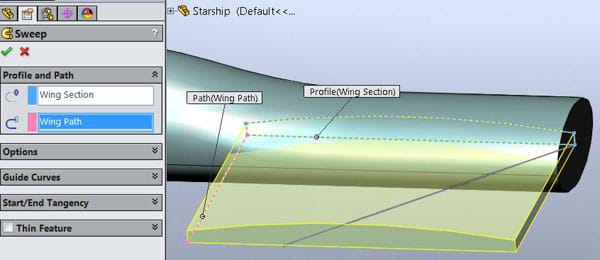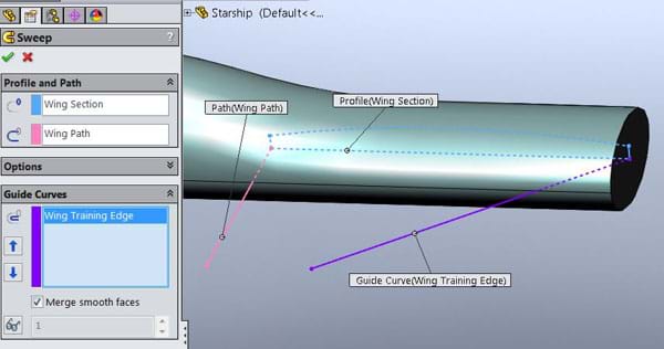 It looks relatively simple - the Path on the left and the angled Guide Curve on the right have both been created before the Profile sketch, but there are issues when we try to make the feature...