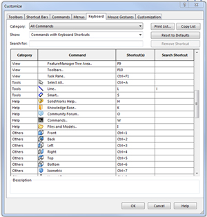 SOLIDWORKS provides a whole bunch of keyboard shortcuts by