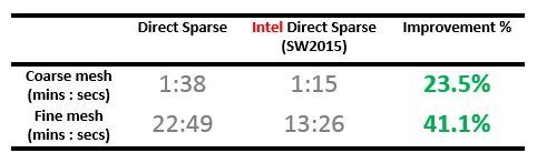 The new “Intel Direct Sparse” solver was an enhancement that didn’t receive much attention at the 2015 launch event this year, but running some in-house tests has shown this new solver is over 40% faster than the standard Direct Sparse.