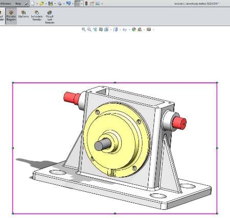 In PhotoView 360, you can define a region of the SOLIDWORKS graphics area for rendering.