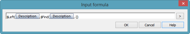 Getting the data from the Right of the hyphen is a little more tricky since the 'Find' function works from the left and starts it's count from '0'. There is also a space alongside the hyphen that we want to remove from the final string. To create this variable I therefore need to combine quite a few functions that allow me to determine the complete length of the Description and the position from the left of the hyphen. I then need to Subtract these to determine the letters to the Right of the hyphen whilst also adding '2' to ensure we ignore the hyphen and the 'space' in the result. The final function now looks like....