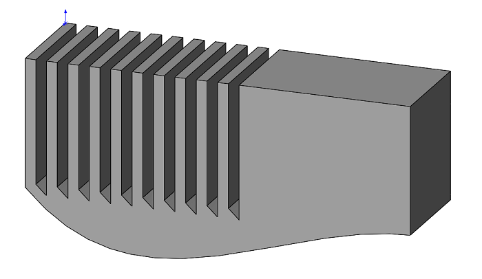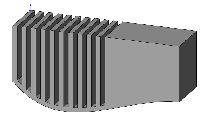The part below was made exactly the same way as the first one except the bottom face is now curved. Note how surface offset relation is retained for the pattern instances in the first case. This is all lost when Geometry Pattern is enabled.