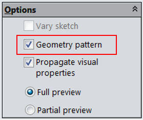 So what’s the catch? – Geometry pattern reduces calculations by simply copying the geometry of the seed part. Having that option disabled would pass on all of the seed feature references and relations to pattern instances.