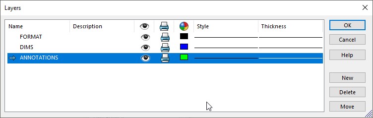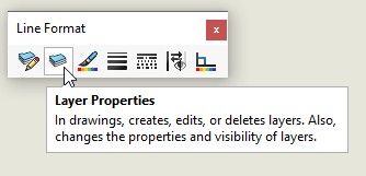 First of all you could do with showing the “Line Format” toolbar (View > Toolbars > Line Format) it will look something like this: The first icons on this toolbar refer to changing and creating new layers. The layer properties button allows you to create and edit the existing layers that are setup: