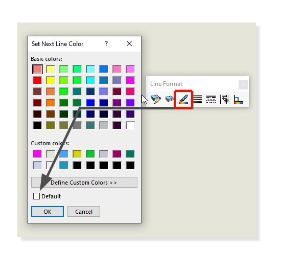 Then press the “Line Colour” button and then ensure the “Default” checkbox is selected