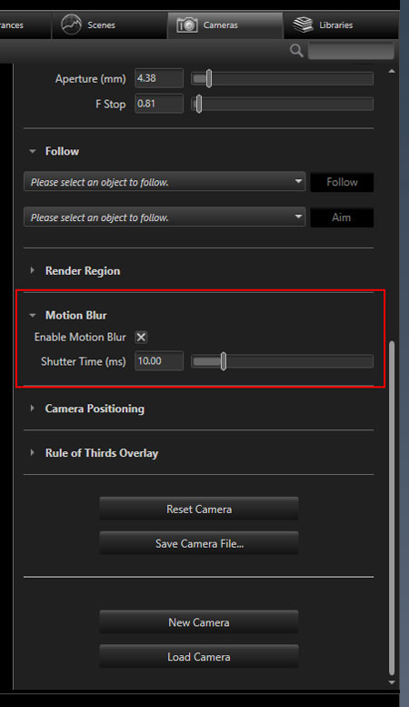 camera interface in SOLIDWORKS Visualise Professional, here we can add motion