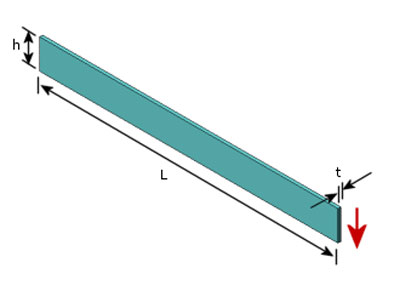 Height 1”, Thickness 0.1” and a load vertically applied at the end of 1lb. This