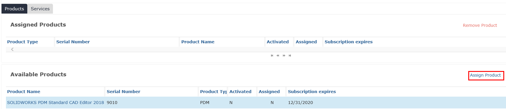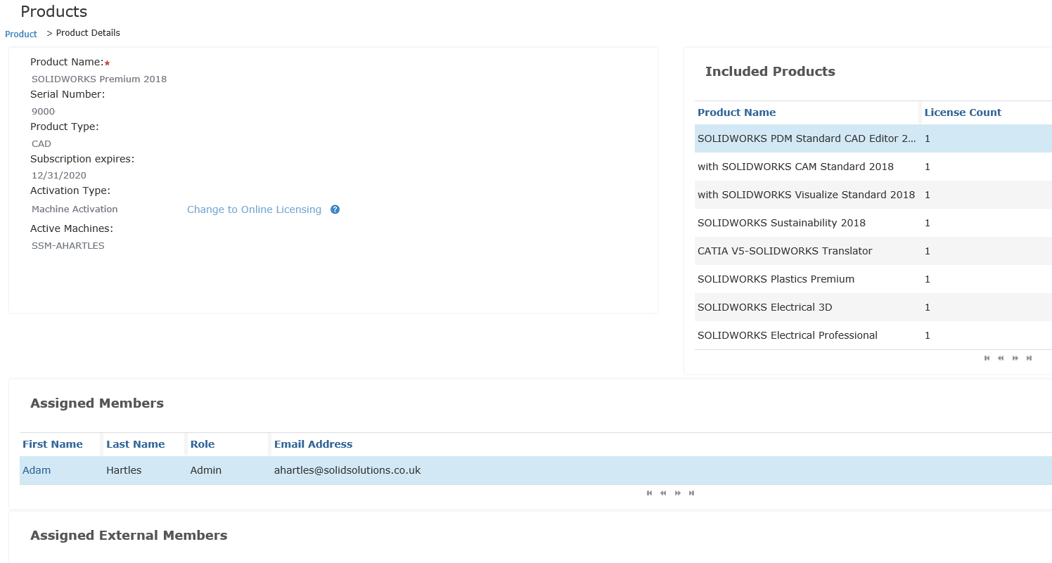 “Available Products”- these are all the SOLIDWORKS licenses associated with