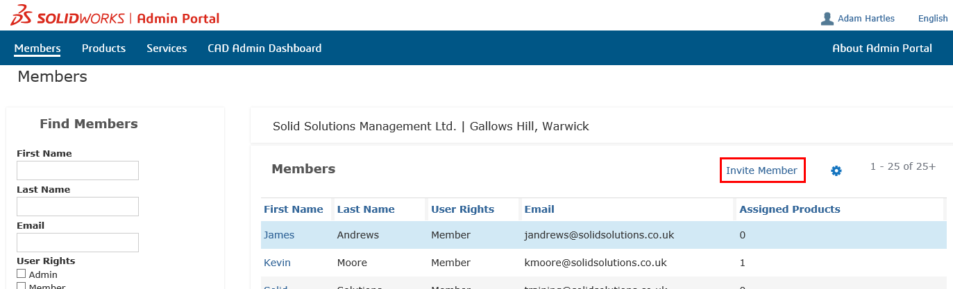 - Invite new members or admins that are actively involved with your company’s use of SOLIDWORKS.