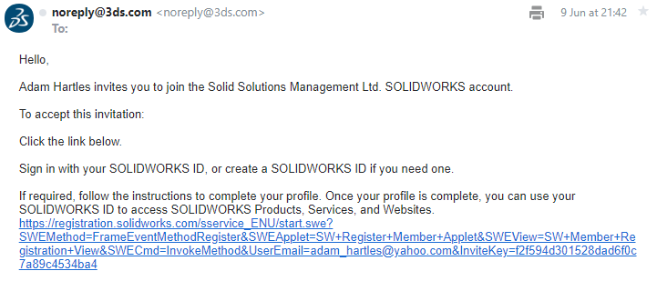 invited user (called a SOLIDWORKS ID), their login won’t give access to the
