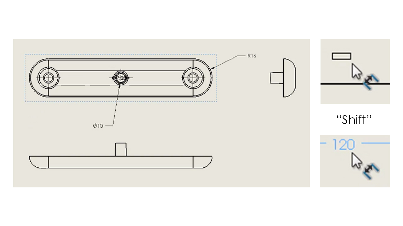 Holding “Shift” whilst dragging a dimension at drawing level will allow you to transfer dimensions from one drawing view to another. This is also a time saving tip since you aren’t required to delete and recreate the desired annotation: