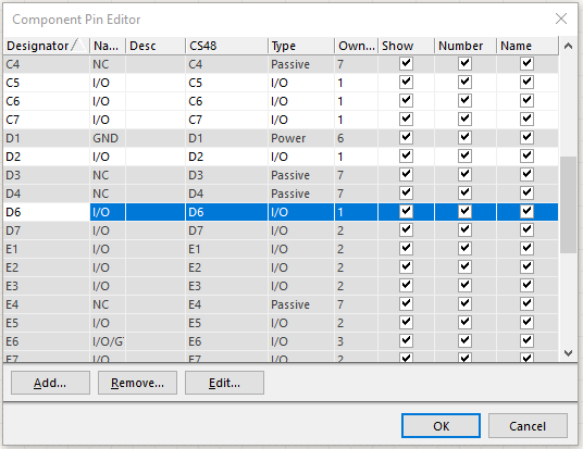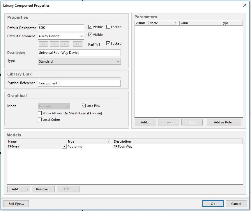 Through the ‘Edit Pins…’ button, the symbol pins and