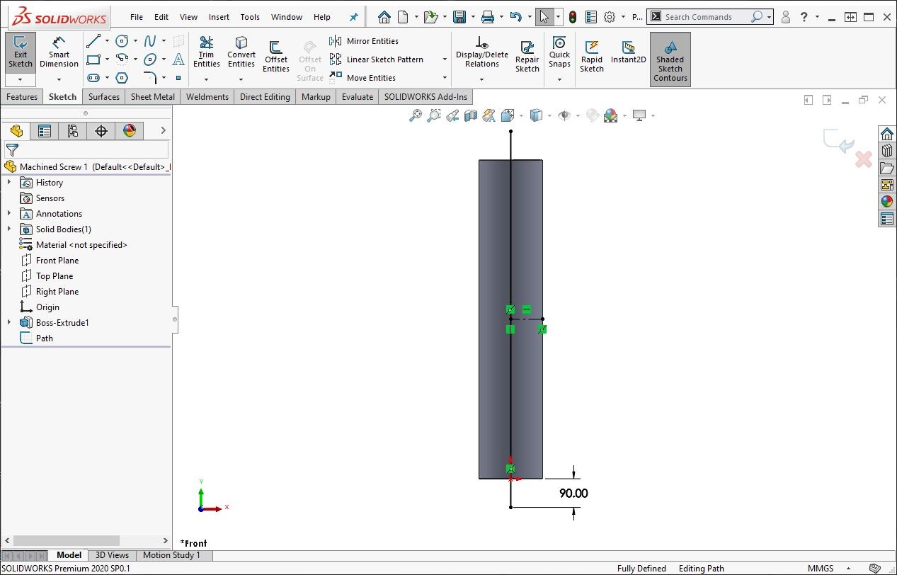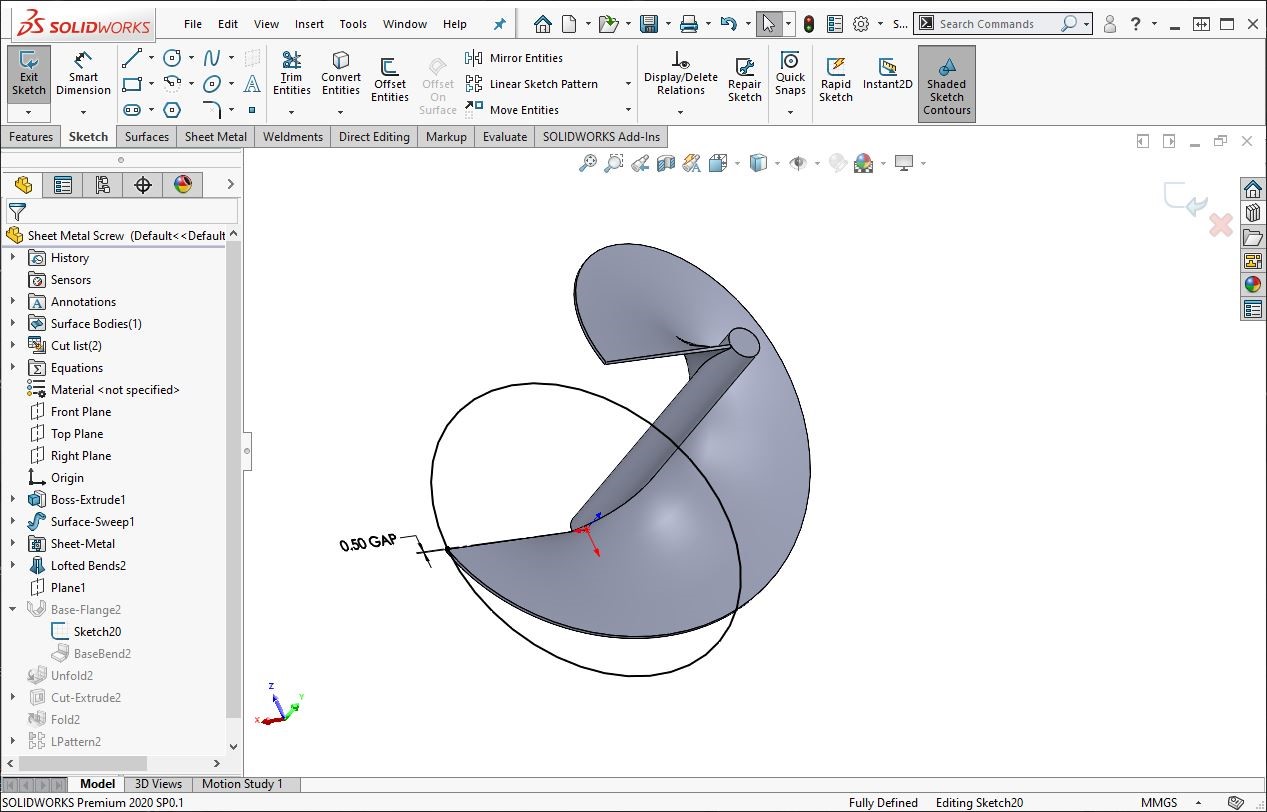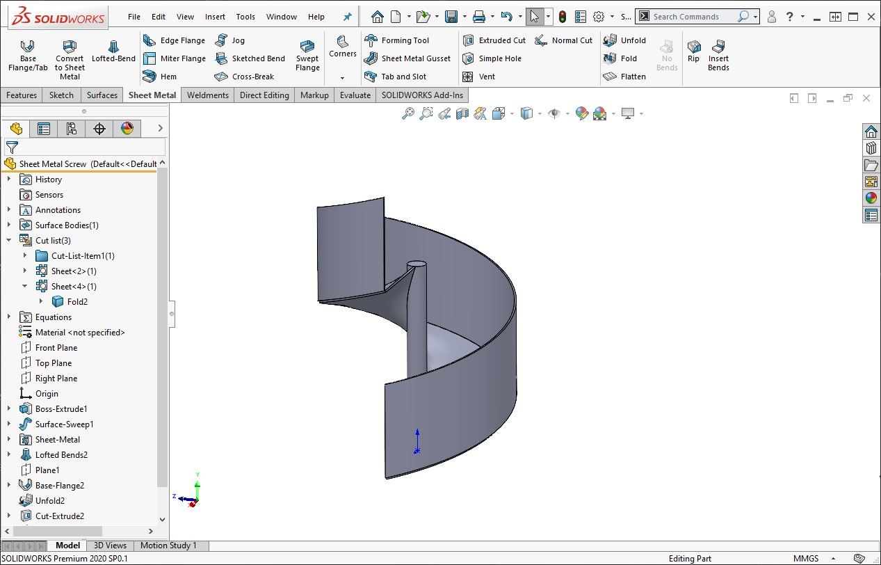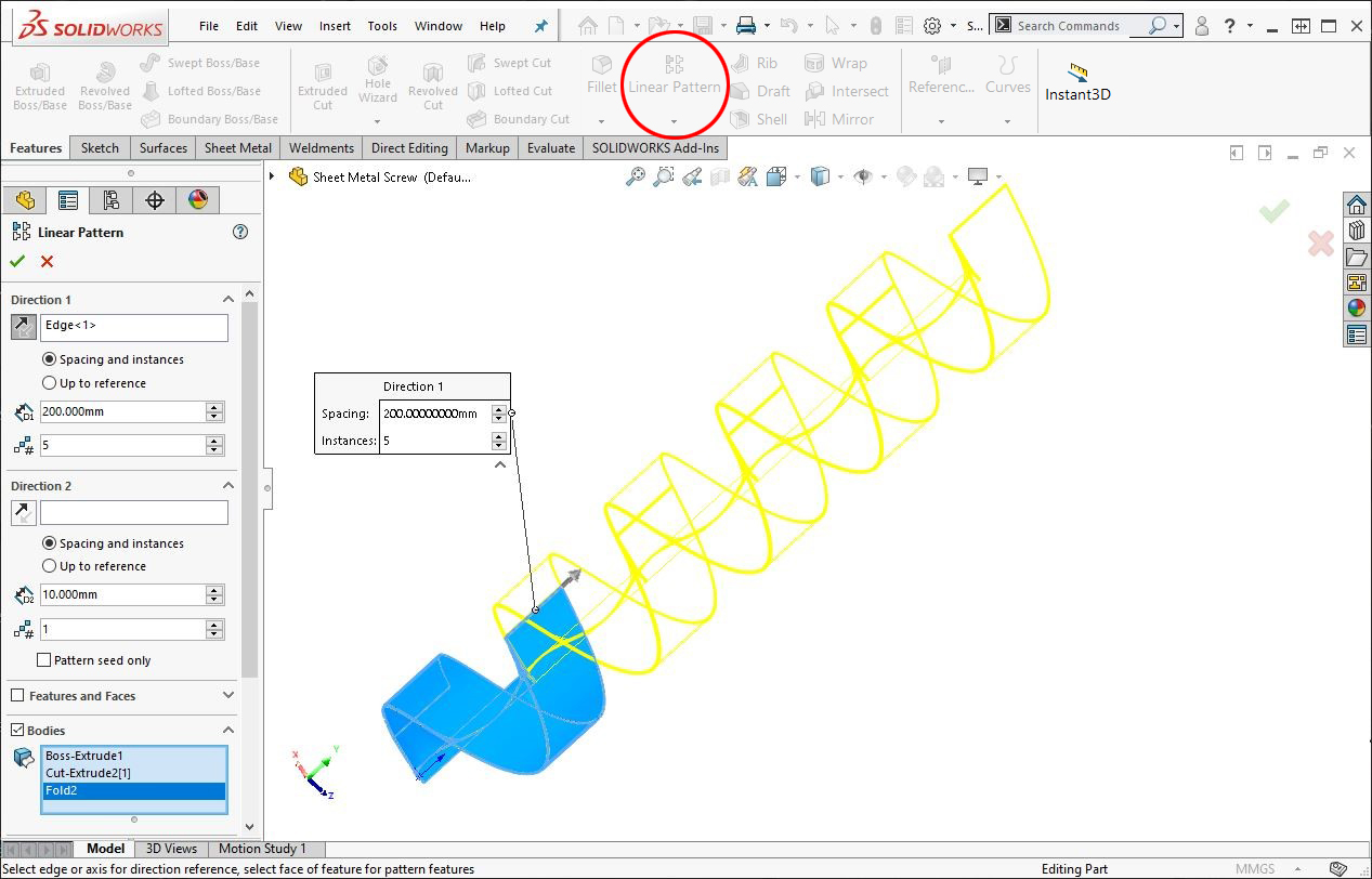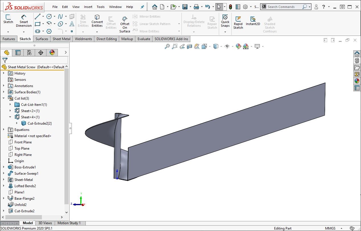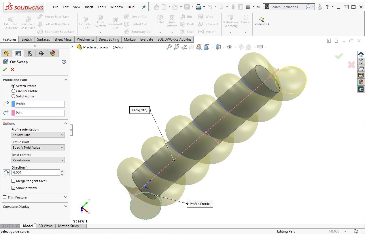Of course, I could have started with a small central cylinder, and used a Swept Boss to add the material of the screw’s “vane” – so then I thought, hmm, what if people need to do this on a regular basis?
