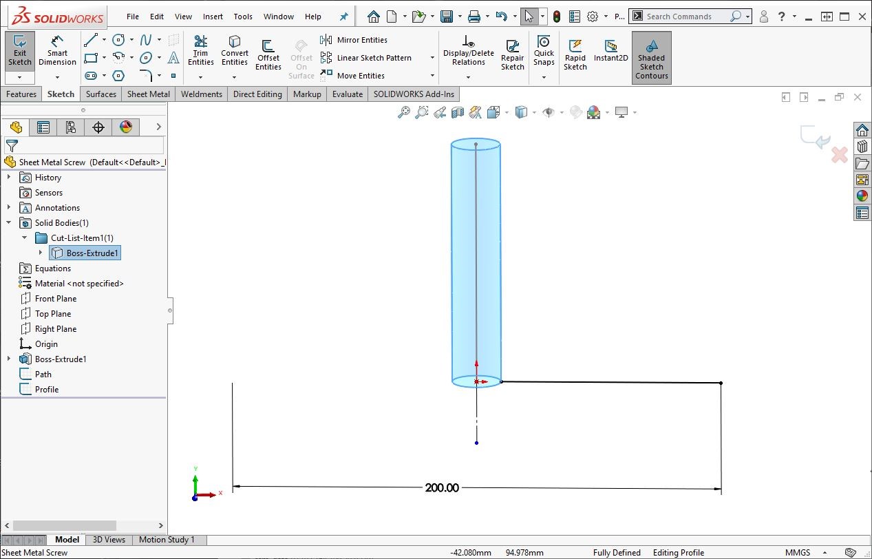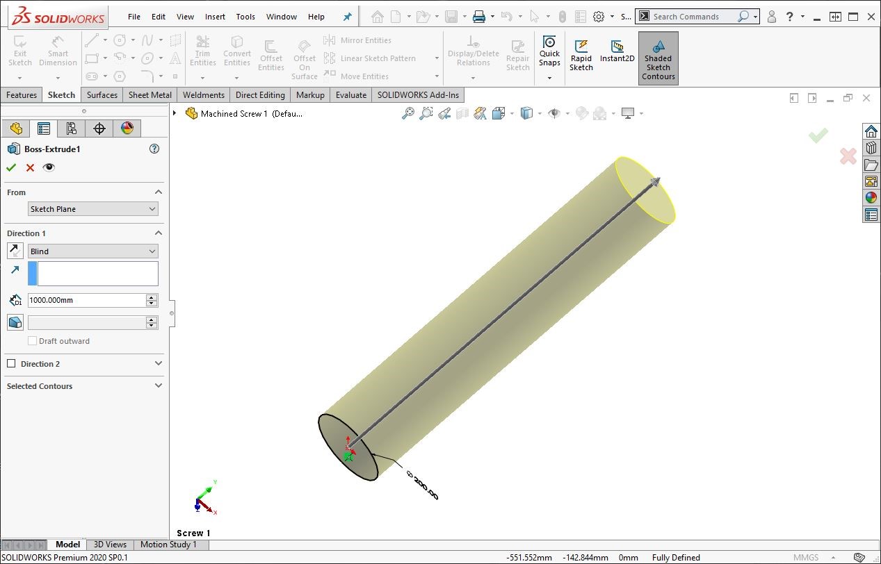 So here’s my first feature, a 200mm x 1000mm long cylinder.