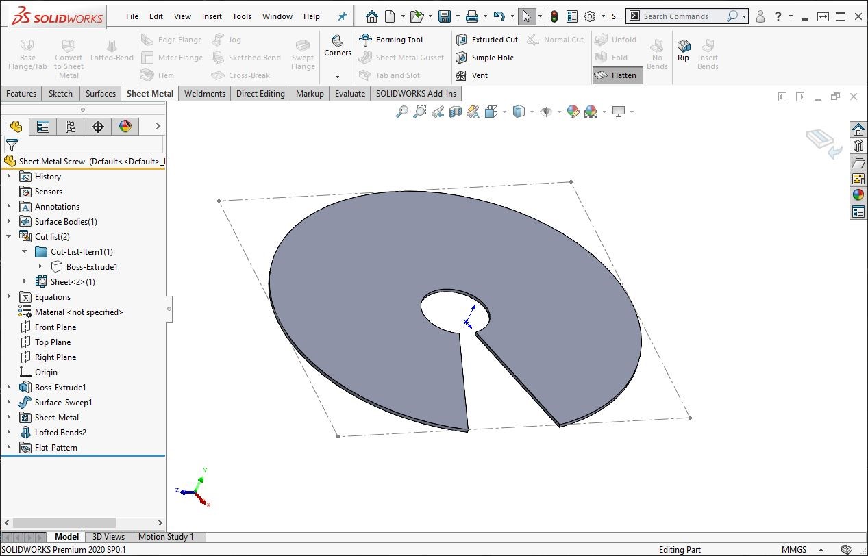 The Cut-Sweep feature can then be used to remove the unwanted material: -