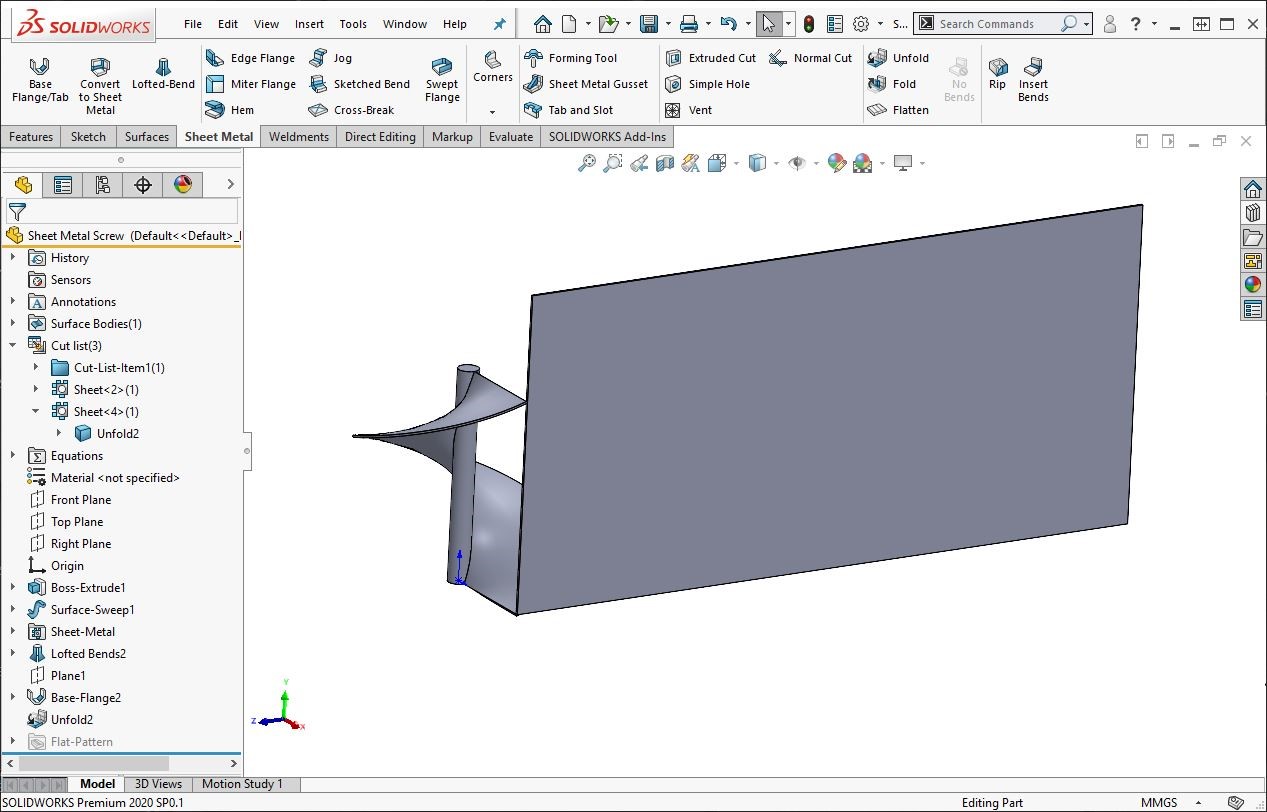This could be created by a Swept Boss, but manufacturing that in real life could be a bit of a nightmare, so I thought that Sheet Metal would be the way to go.