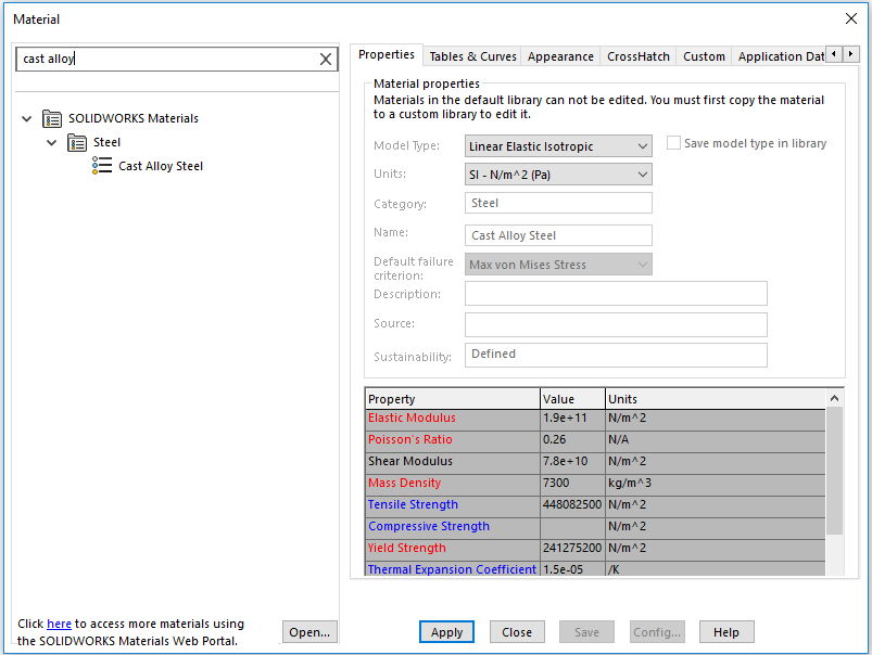 This is a SOLIDWORKS-wide feature but a valid tool within the simulation setup. Any material can now be searched for, using the search box in the upper left corner of the material dialog box. This includes custom libraries so that your company specific materials is closer than ever before.