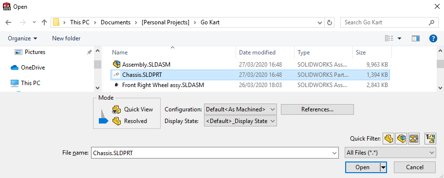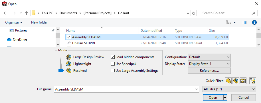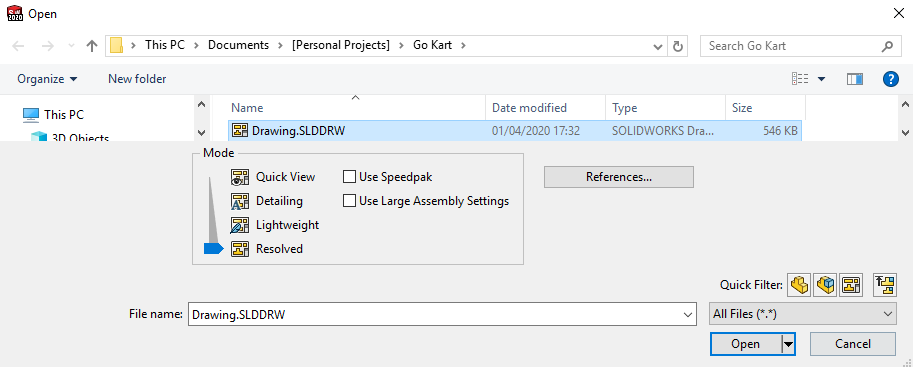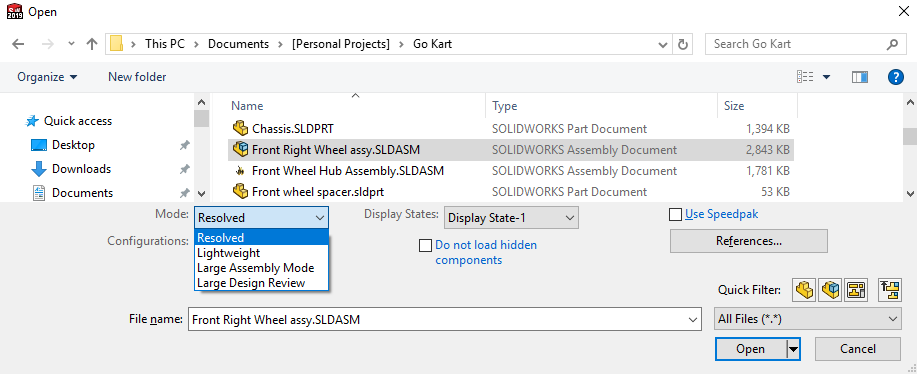 Up until this point, if you have been using SOLIDWORKS 2019 and prior, you may have seen the drop down menu allowing you to select different open modes when opening a model through SOLIDWORKS.