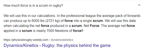 The next step before running the study is to set up the loading so first gravity can be quickly applied. And from a quick google search we can find roughly what the maximum force a rugby pack can put into a scrum: