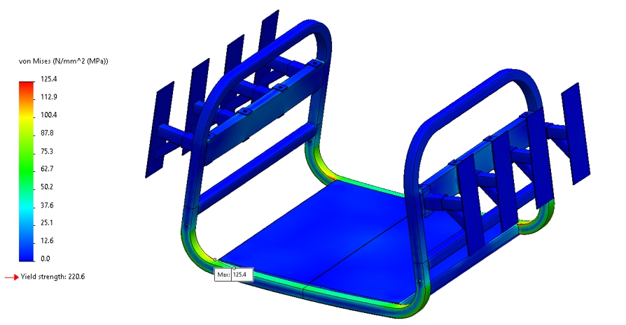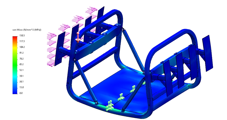 see more in our first blog ) we wanted to run an initial static simulation to ensure the frame will withstand the forces applied by the players and find out how the design performs with and without the cross brace.