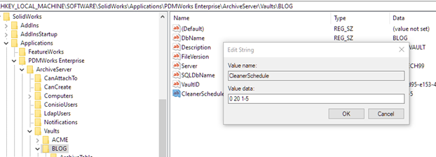 HKEY_LOCAL_MACHINE\SOFTWARE\SOLIDWORKS\Applications\PDMWorks Enterprise\ArchiveServer\Vaults\VAULTNAME