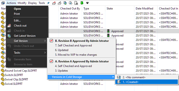 Cold storage is a feature in SOLIDWORKS PDM that,based on a defined schedule and schema, will automatically move or delete old versions of files and therefore can be used to reduce the amount of disk space required on an archive server. Whilst it would be possible to recover file versions ‘moved’ by cold storage, if you choose to delete an old version instead then it is permanently removed from the archive and cannot be recovered.