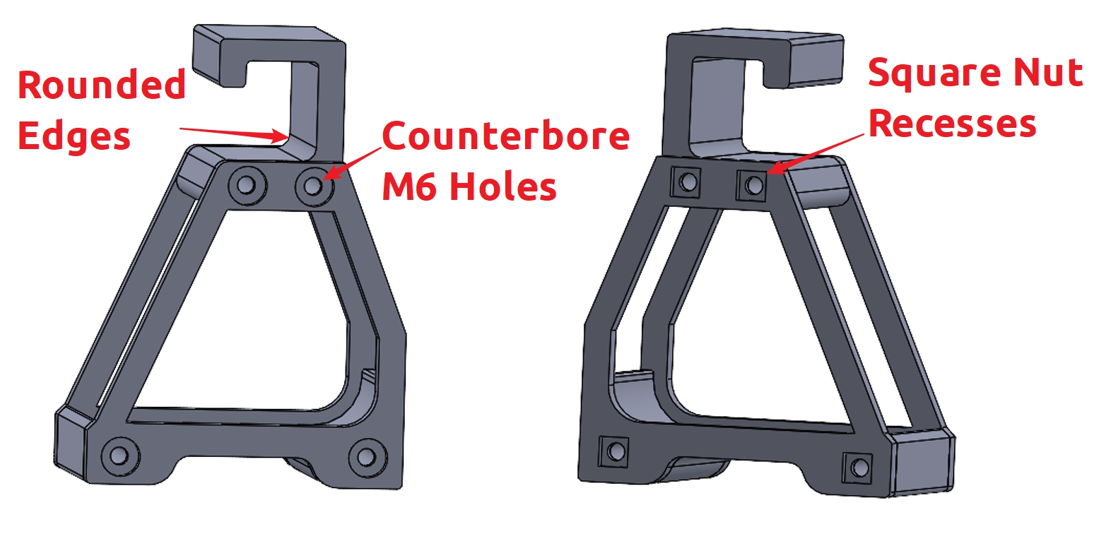 Any load bearing parts should avoid having sharp corners. Sharp corners are prone to crack initiation and propagation and could be a weak point in a product. It is also good practice to round off sharp edges to reduce the risk of scratches or lacerations. Make use of the ‘Fillet’ command in SOLIDWORKS to help round off any sharp edges or corners.
