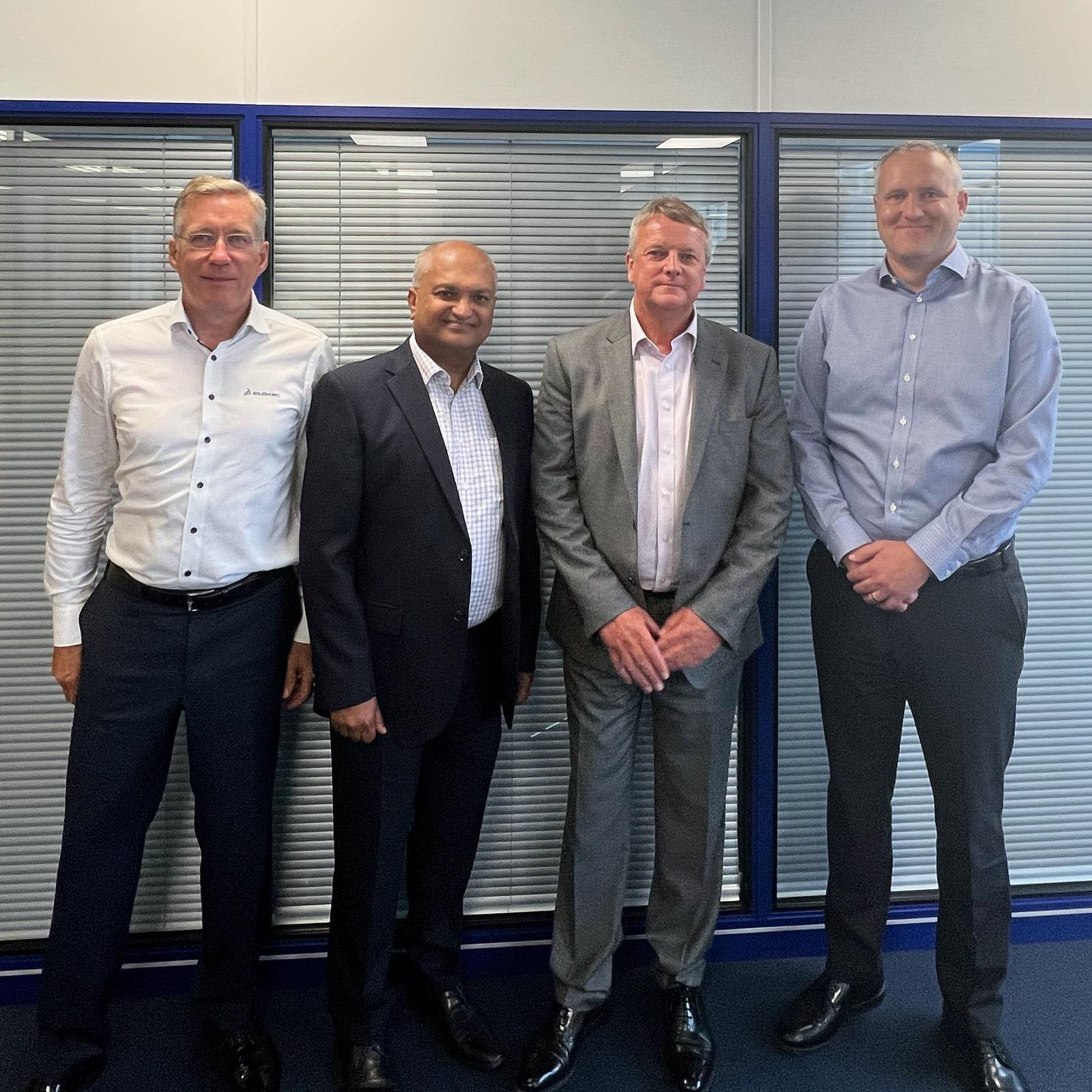 Image shows from left to right: Alan Sampson, CEO of Solid Solutions, Monty Meghjee, Commercial Director at Majenta Solutions, David Downes, Managing Director at Majenta Solutions, and Paul Byerley, Finance Director at Solid Solutions.