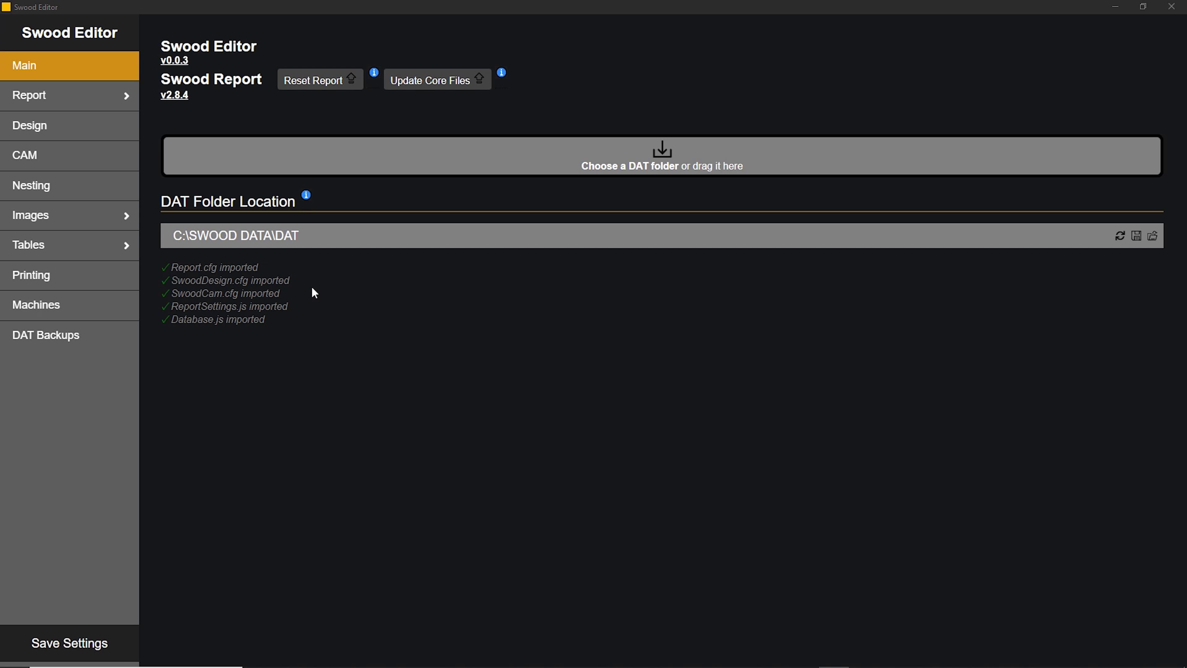 DAT folders can be redirected here by dragging the new folder into the app and you can update the report in the referenced directory by clicking Reset Report.