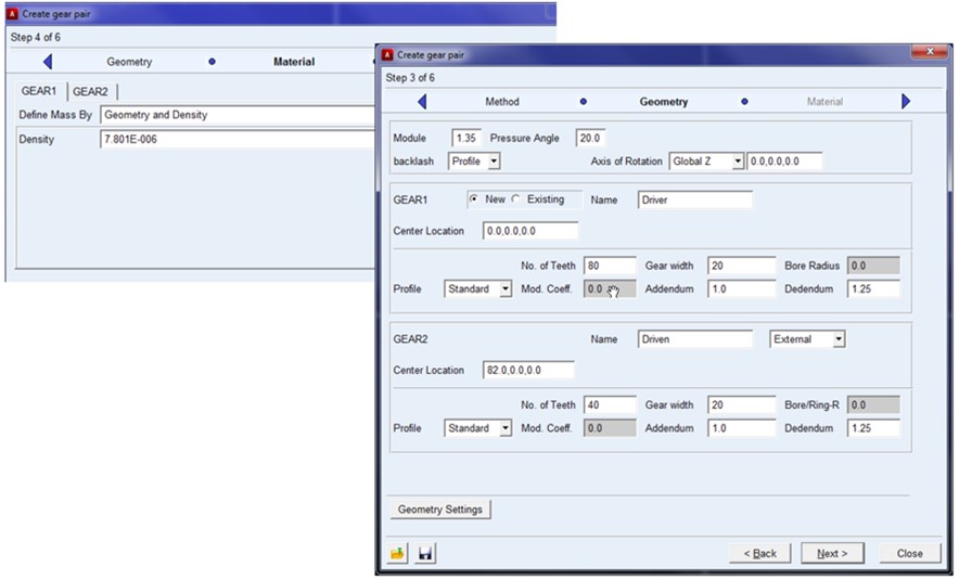 Adams Machinery Gear introduces options through a simple wizard toolkit and creates all the entities you need
