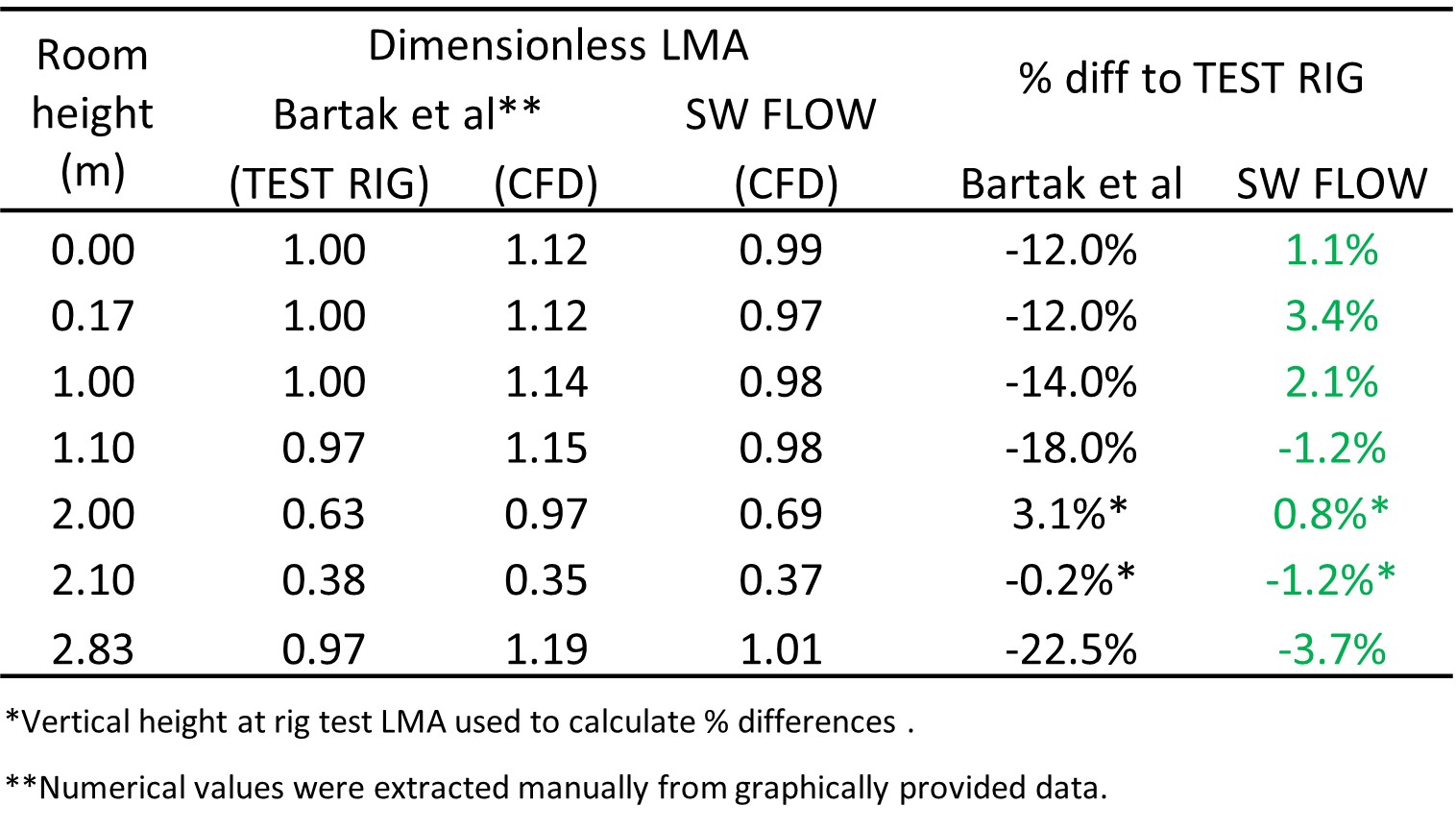 LMA results provided by Bartak et al. were divided through by 538 to provide a dimensionless LMA. This has been carried out here too for comparative purposes.