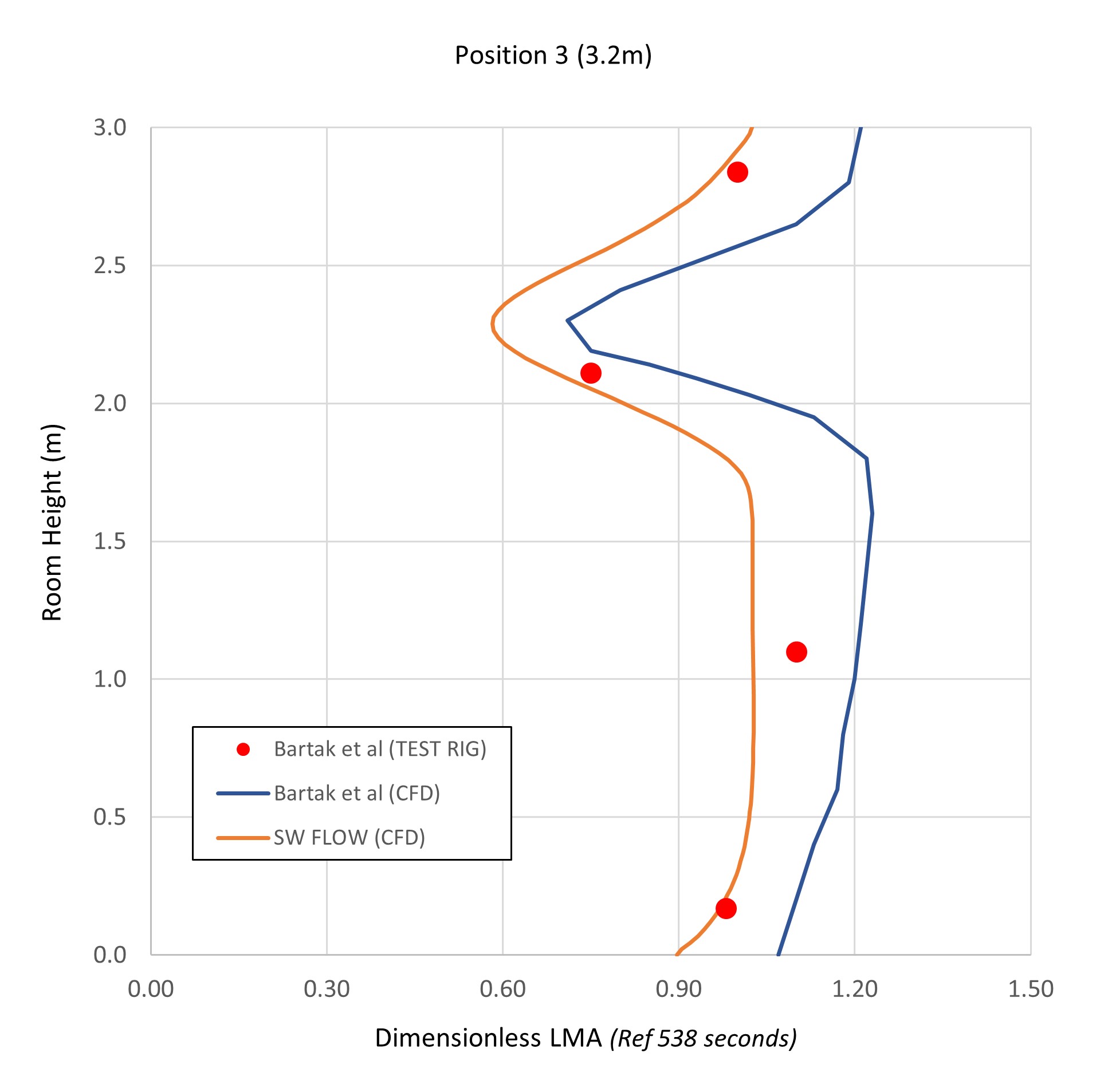 Learn More Results were taken along 3 vertical lines extending from floor to ceiling and running down the centre of the room and compared against the practical test by Bartak et al.