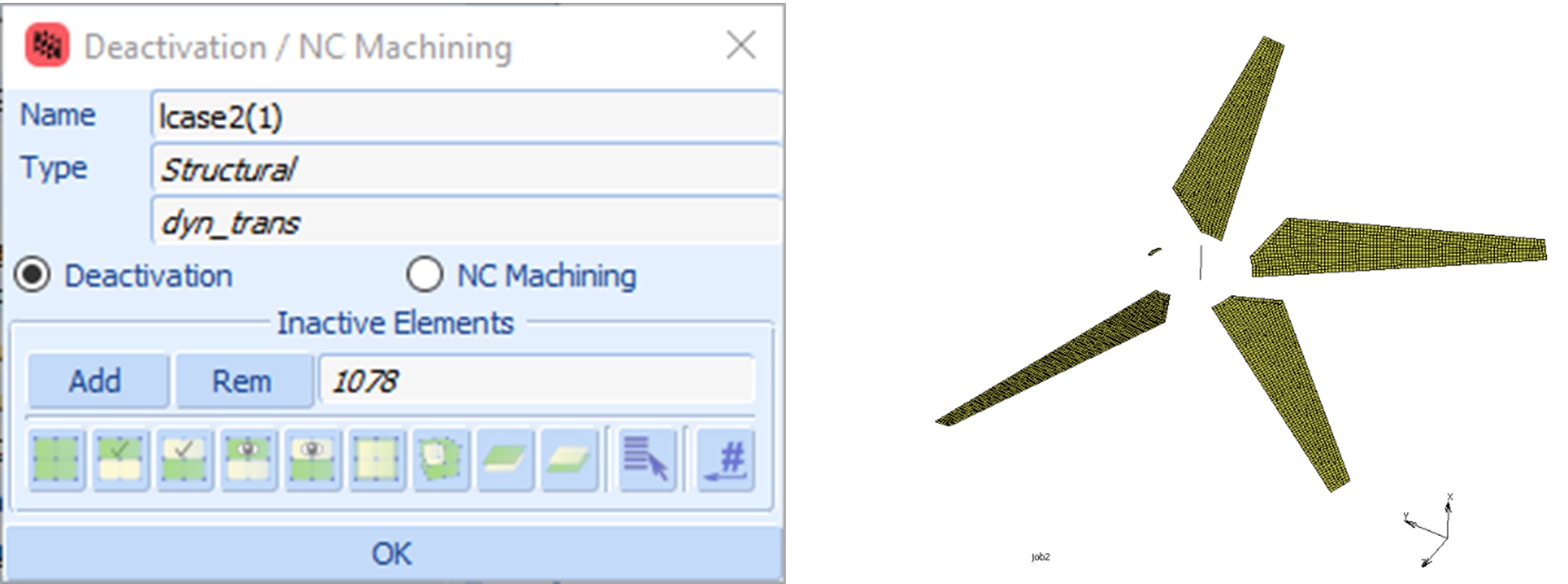 In the second step we deactivate one blade set of elements by simply nominating the ones to remove.