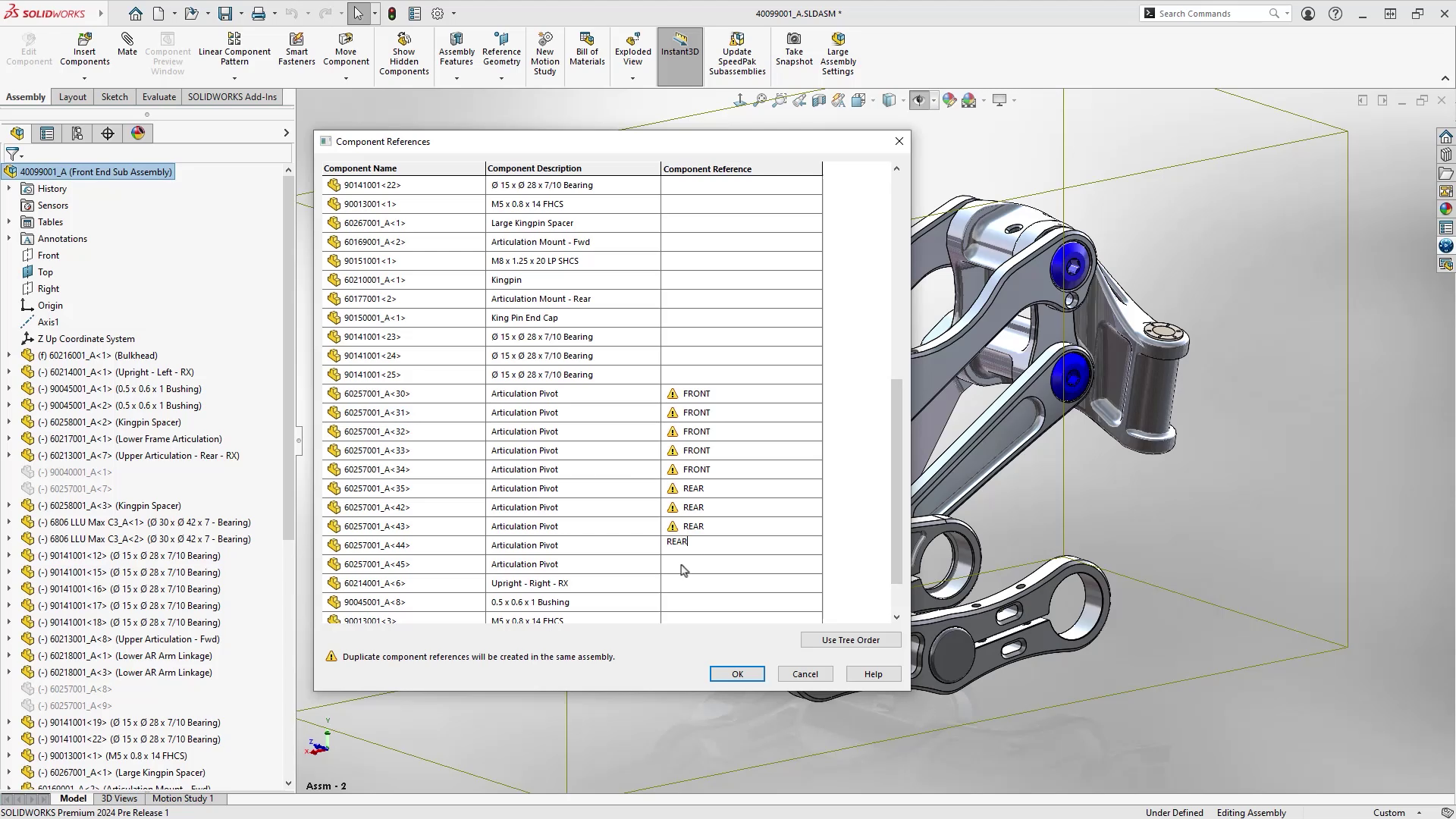 The table is accessed from the right click menu of the top-level assembly, then Edit Component References.