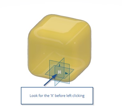 When adding a primitive, consider its placement. To place the primitive at the origin, look for the ‘X’ and click the left mouse button to place the primitive.
