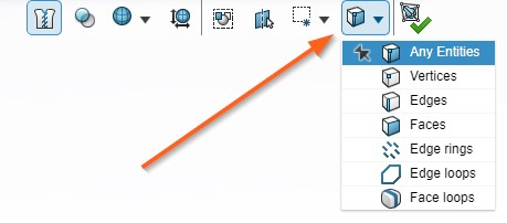 It is recommended to orientate the model normal to your screen, so that you can clearly see which entities have been selected. Use the view selector in the top right corner to orientate the screen.