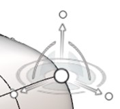 - Scale handles (marked as a dot at the end of each axis handle) – Used to scale the selected geometry in one, two or three directions.